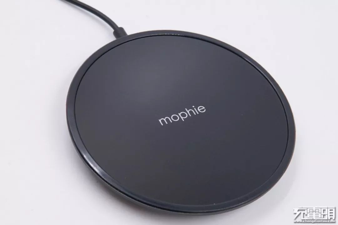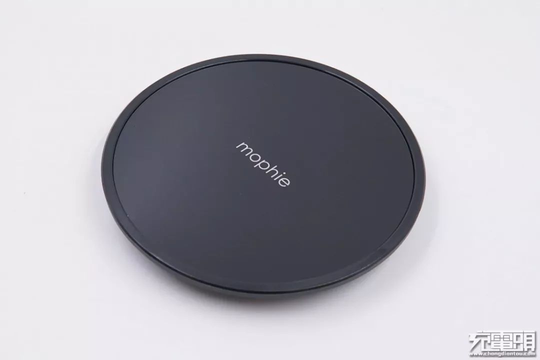 產(chǎn)品中心有一個mophie的logo,面板為光滑玻璃,四周一圈為防滑橡膠涂層。產(chǎn)品通體為黑色,造型簡約。