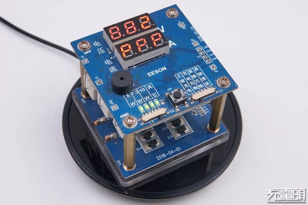 使用無線充電老化測試治具進(jìn)行測試,顯示“PPP”,即支持普通5W、蘋果7.5W和三星10W。