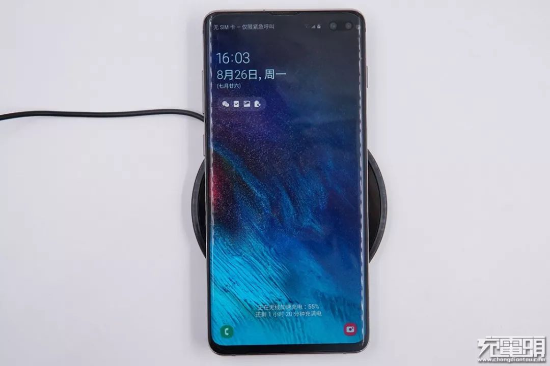 此外,測試三星S10+手機(jī),屏幕顯示“正在無線加速充電”,表明也支持三星無線快充。