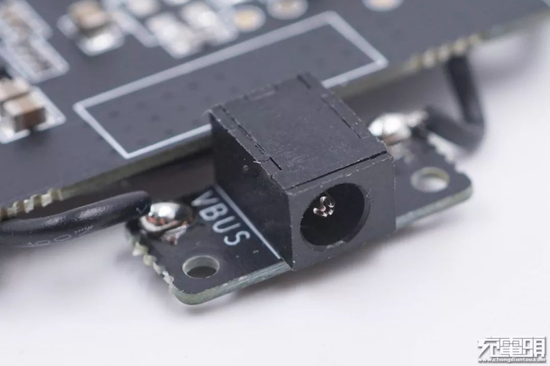 DC輸入圓形接口固定在PCBA小板上,小板通過導(dǎo)線焊接到大板上。