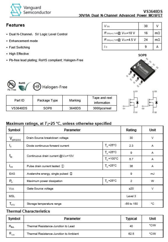 威兆 VS3640DS NMOS管。