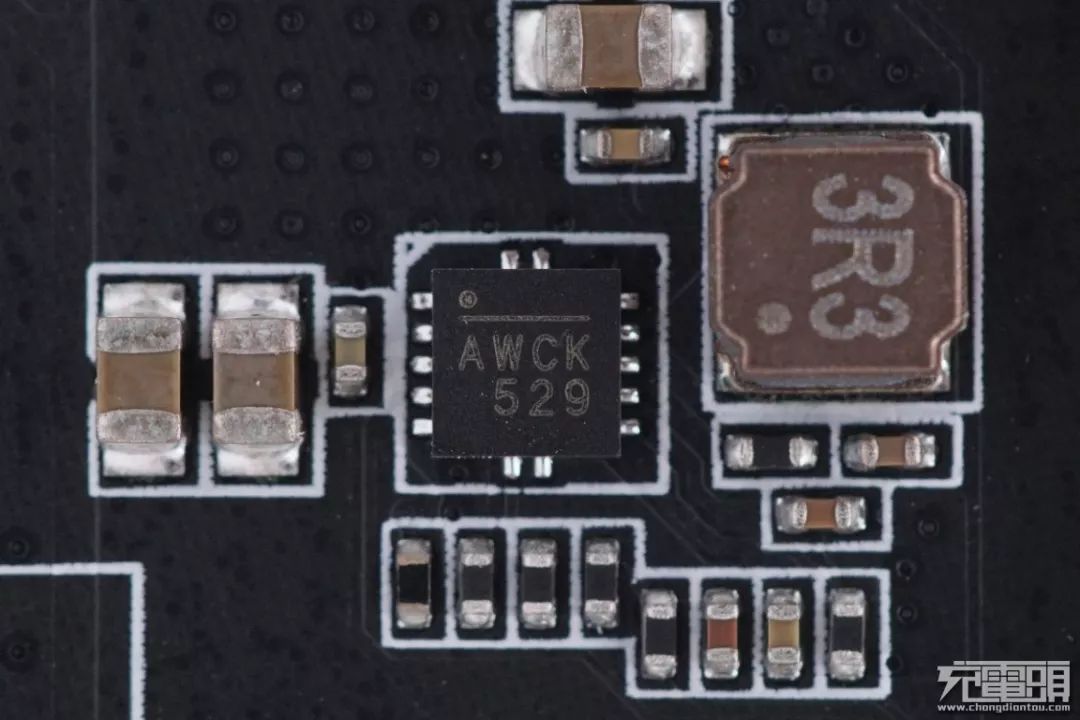絲印AWCK,MPS同步整流降壓IC,調(diào)節(jié)輸出電壓進(jìn)行蘋果定頻調(diào)壓充電。
