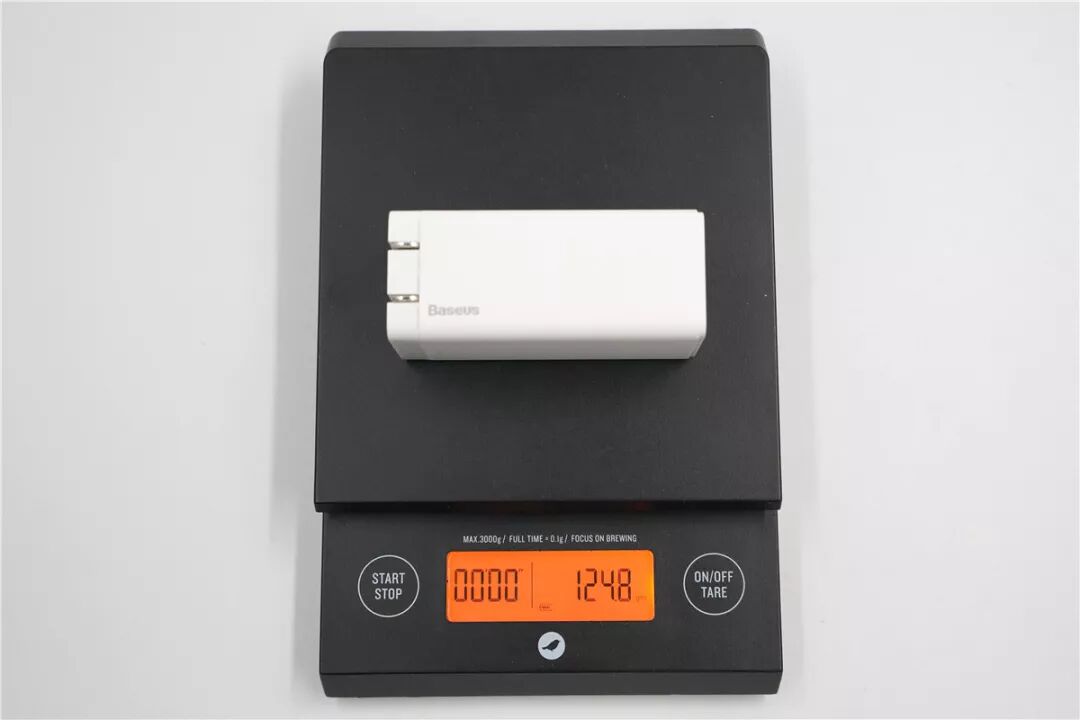愛否開物1A2C 65W PD氮化鎵充電器重量為124.8g。