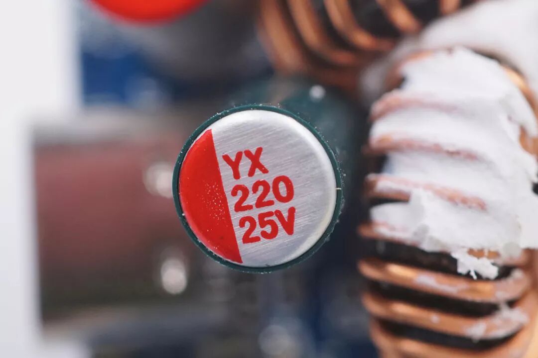 另一顆為YX云星電子的固態(tài)電容,規(guī)格同樣為220μF 25V。